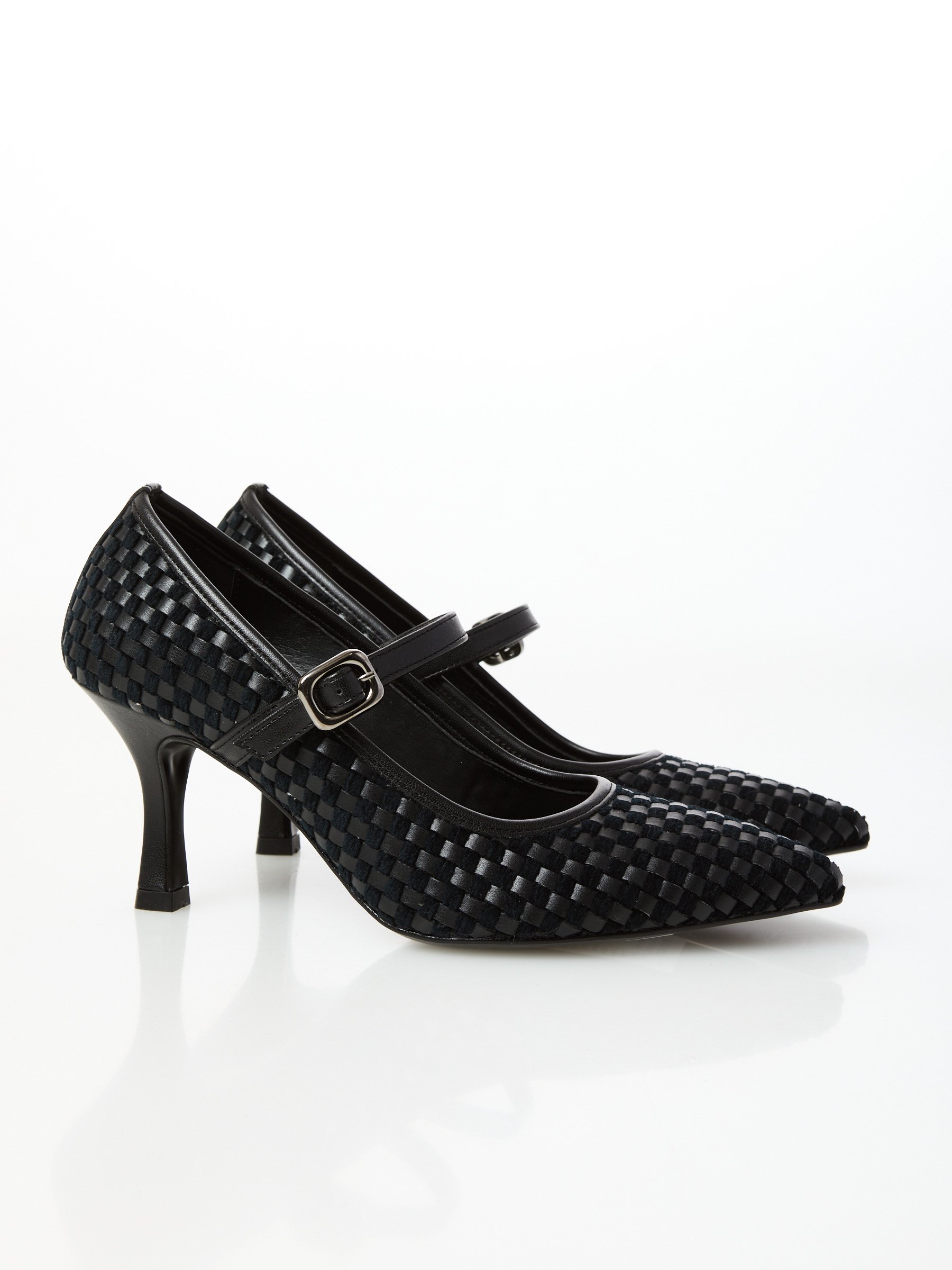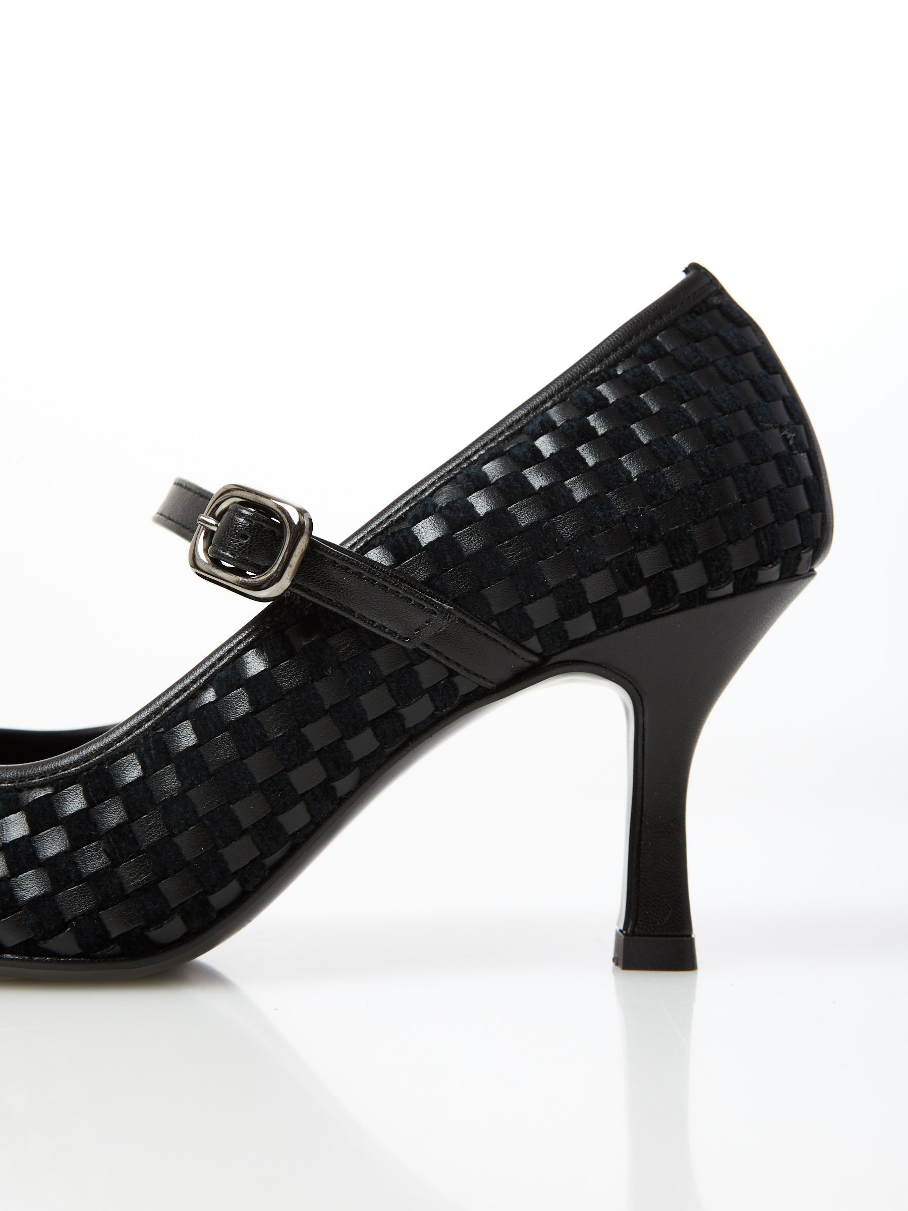 Women’s braided pump shoes in synthetic leather. Strap. 7cm. heel.