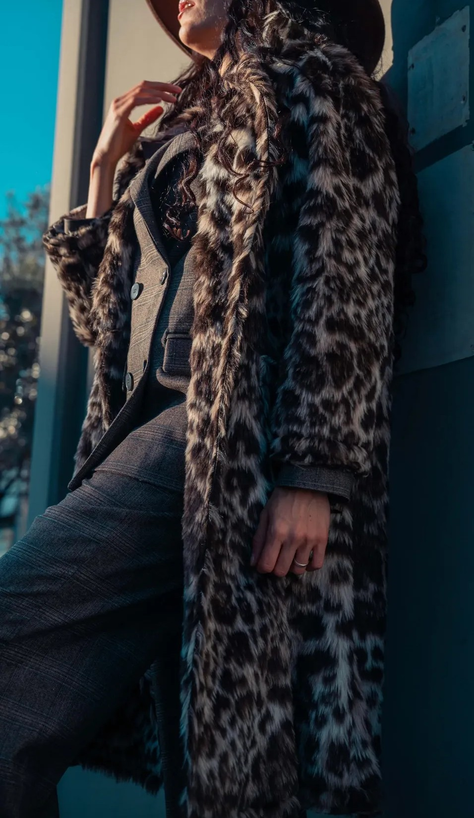 An elegant Italian designer faux fur coat featuring a timeless leopard pattern. Soft to the touch and tailored for a relaxed fit, it provides both comfort and glamour. Ideal for elevating everyday looks or completing a sophisticated evening ensemble, this coat captures the essence of bold Italian style.