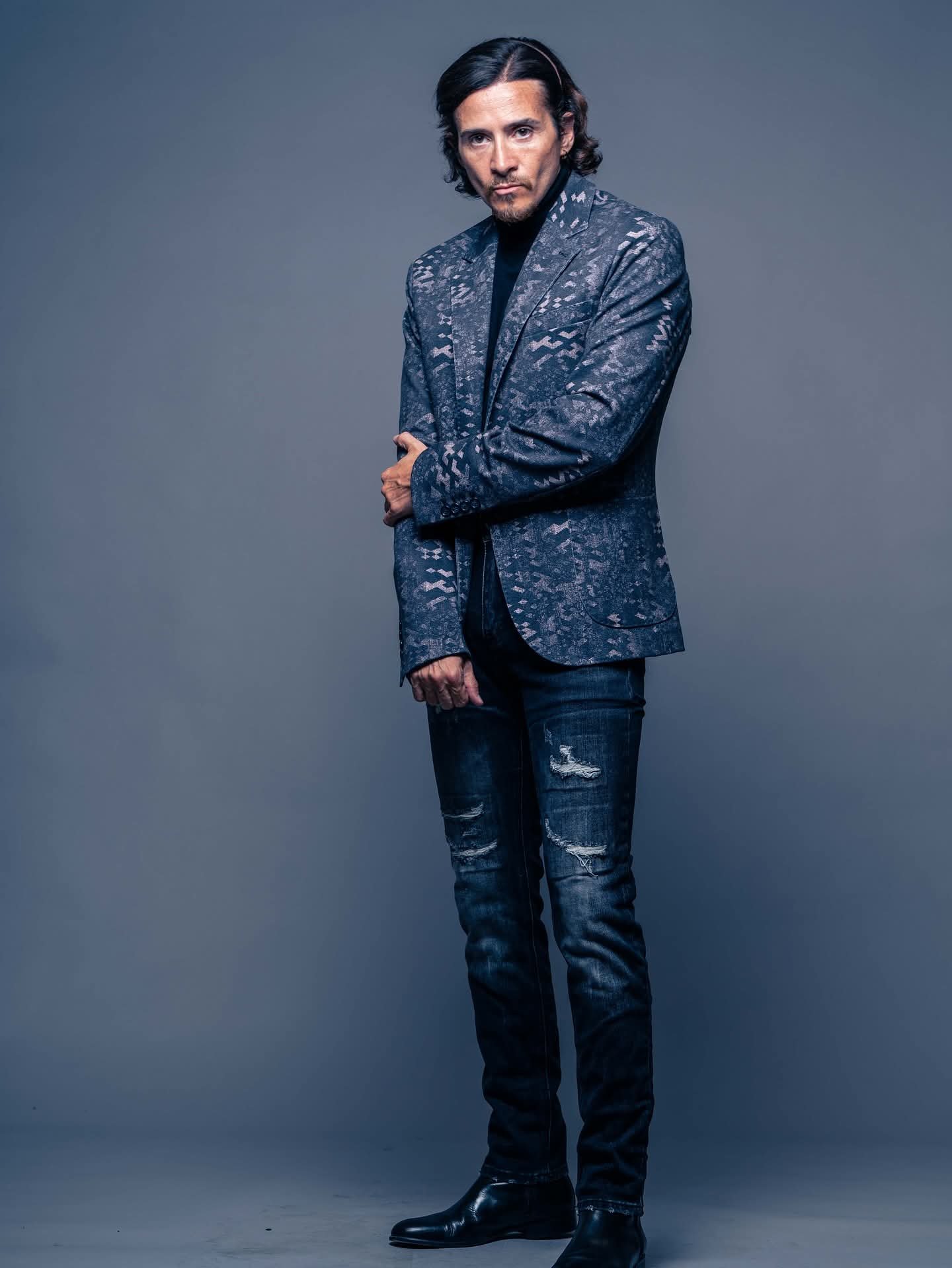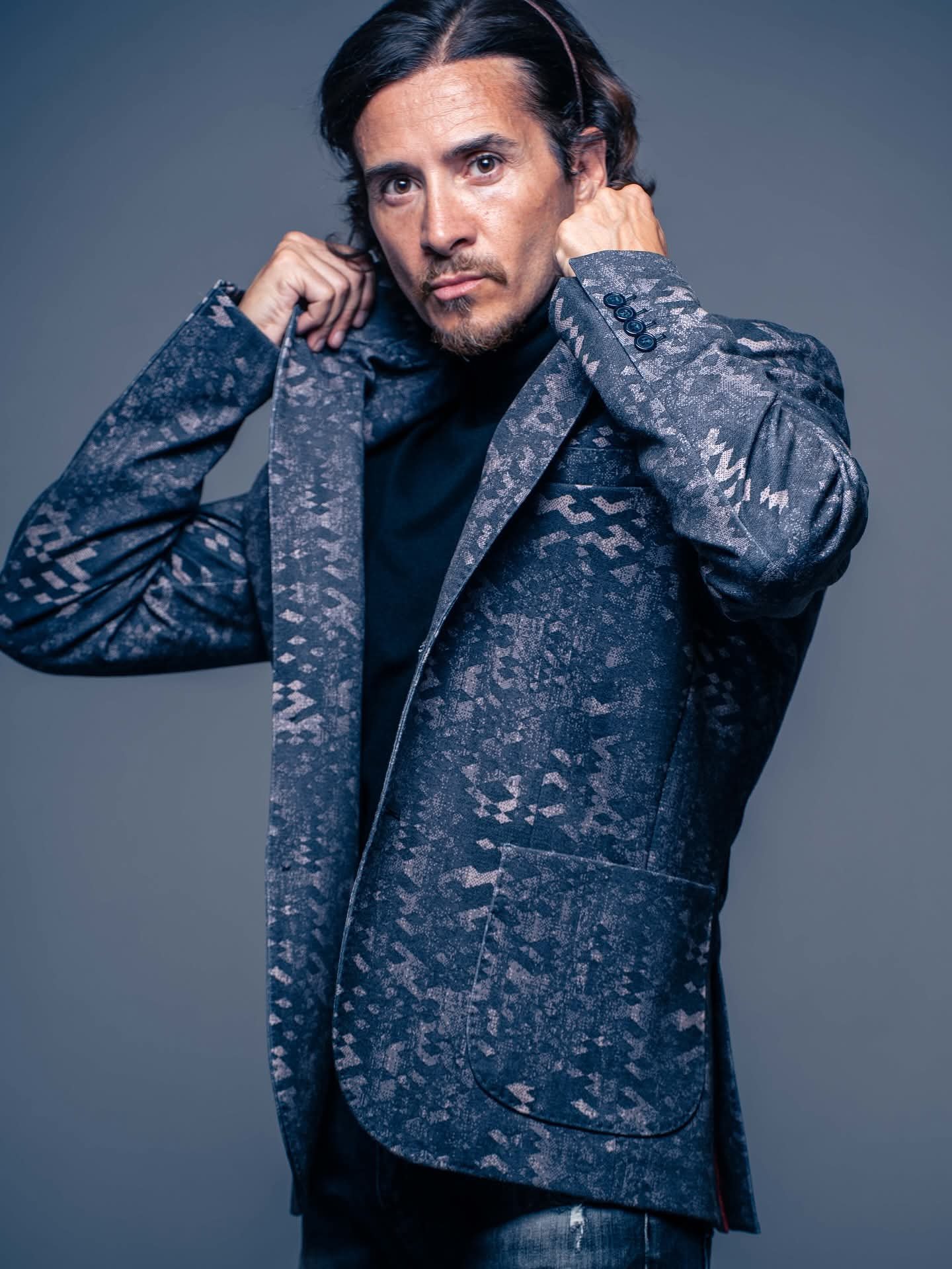 Italian designer patterned blazer in shades of dark grey. Modern, structured, and effortlessly sophisticated.